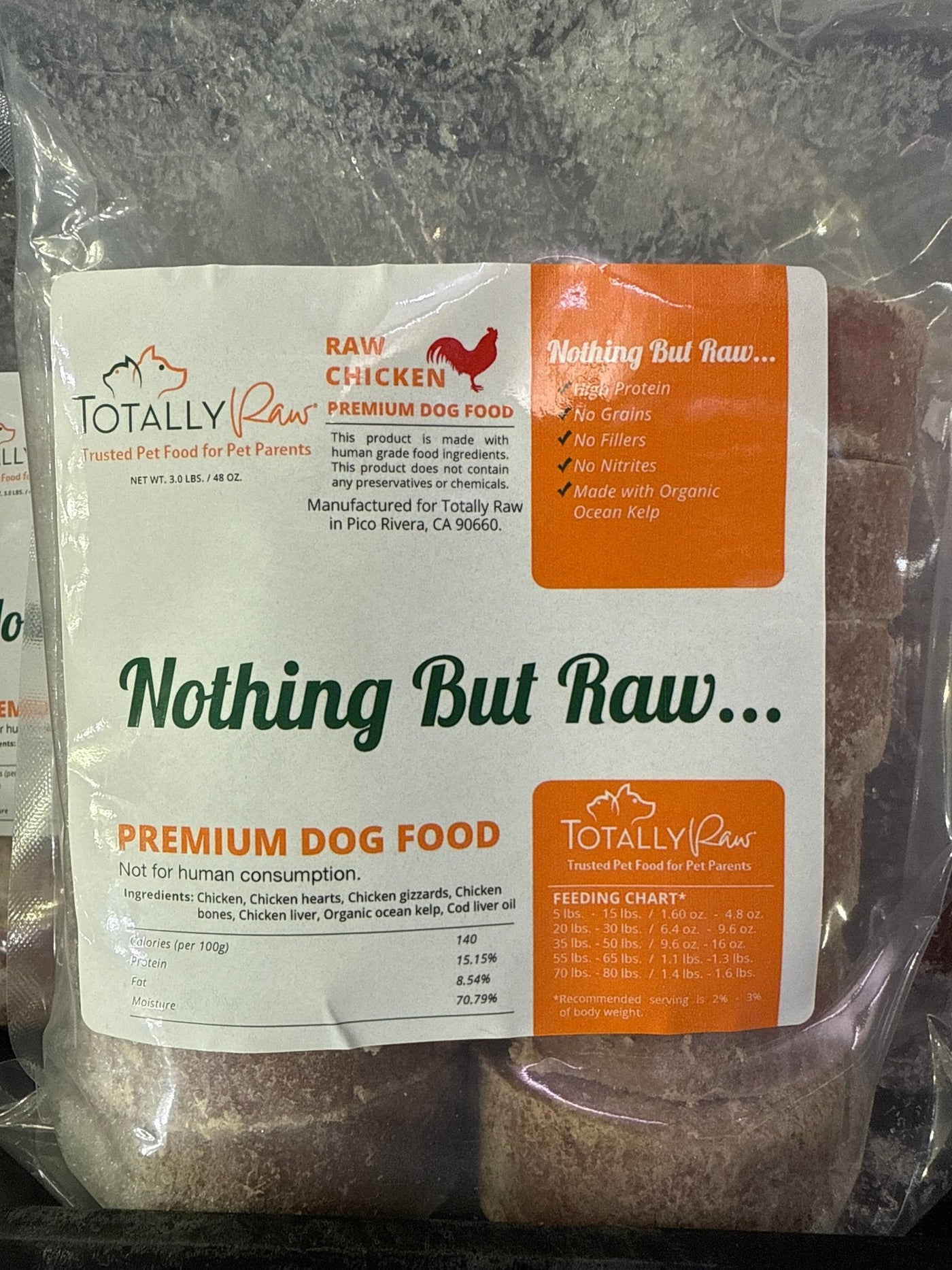 Unlike kibble, which is highly processed and filled with grains/starch, Totally Raw Co provides biologically appropriate raw food (BARF). Our meals are made with real, raw USDA-approved meats and fresh produce, retaining natural enzymes and nutrients that high-heat processing destroys.